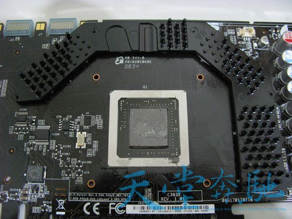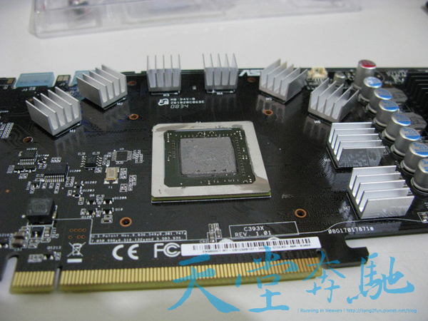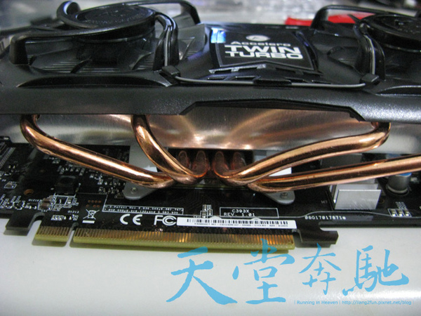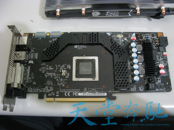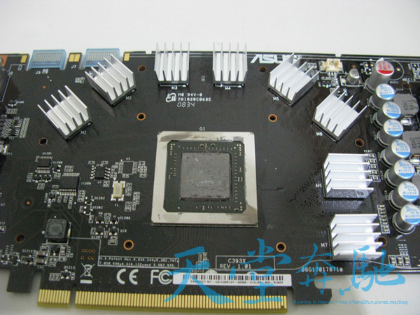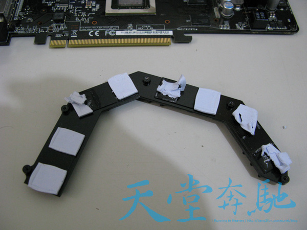 把風扇拆開後的顯卡照,上面是原廠所附的散熱片。