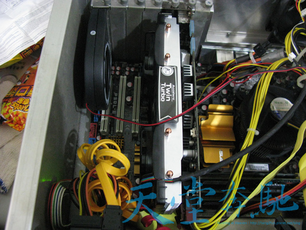 金剛組合!!!!安裝好顯卡後的照片,顯卡下面是額外加的抽風器。