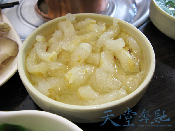 『魚皮』跟『蹄筋』建議一樣不要滾太久,會縮的變魚皮干。這『魚皮』看起來有比一般吃到飽的店質感好一些。